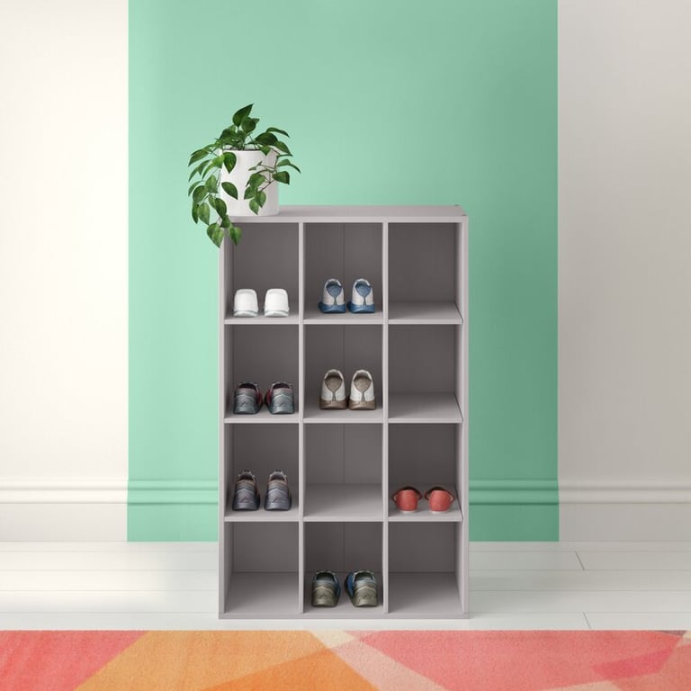 باربرا  خزانة أحذية يصل استيعابها  إلى 12 زوجًا من الأحذية وهو خيار أساسي ولكنه أنيق. تتميز بـ 12 مقصورة تخزين عميقة بشكل استثنائي على شكل مكعب موضوعة في صفوف ومصنوعة من الخشب المصنّع.