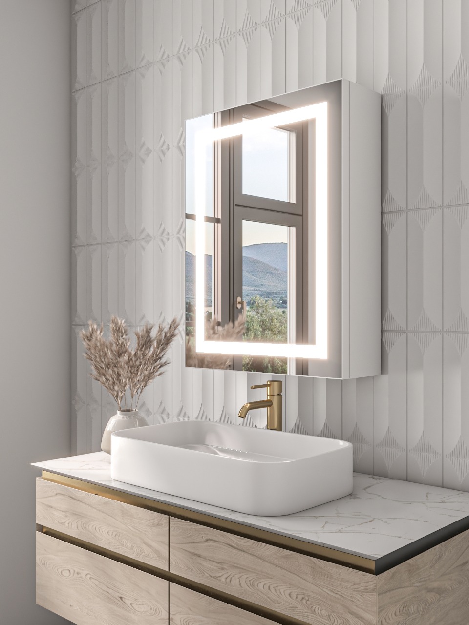 ديكسي – مرآة حمام ليد مع خزانة أدوية من الخشب الطبيعي