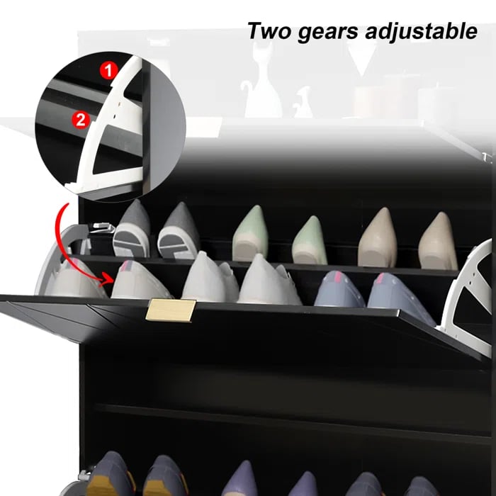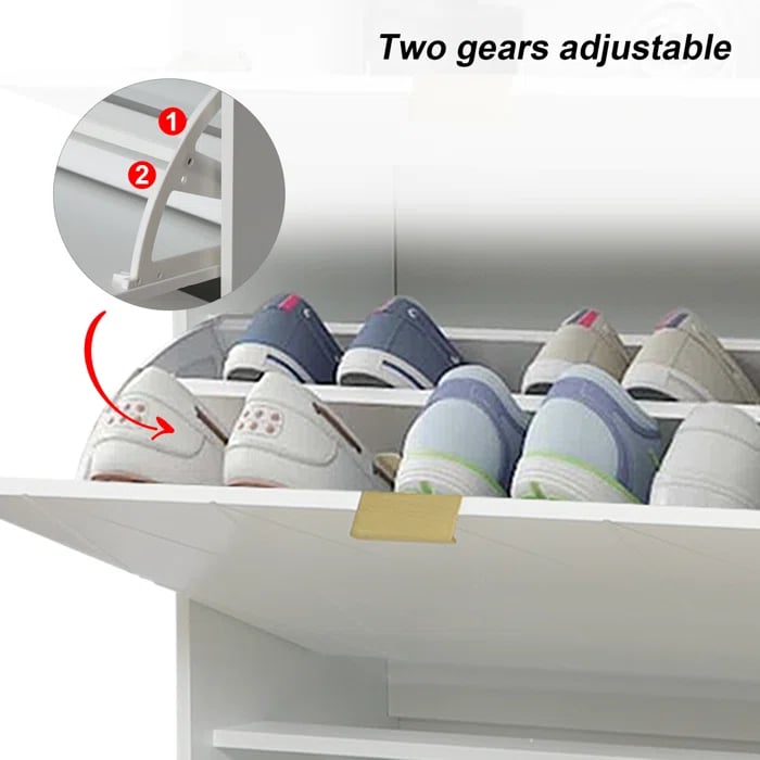 2. ٢ درج قلاب يحتوي كل منهما على رف قابل للتحريك للتحكم في مساحة التخزين.
