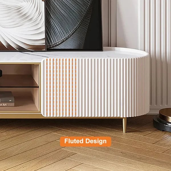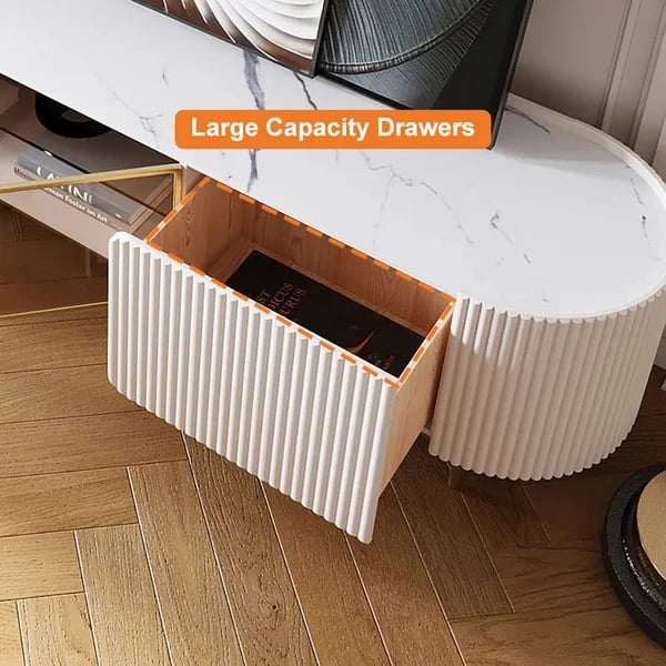 أضف لمسة عصرية إلى غرفة معيشتك أو مركز الترفيه الخاص بك مع طاولة التلفزيون هذه. يتميز حامل التلفزيون هذا بخطوط واضحة وزوايا مستديرة، ويتميز بمظهر بيضاوي فريد من نوعه لإضفاء لمسة هندسية مرحة.