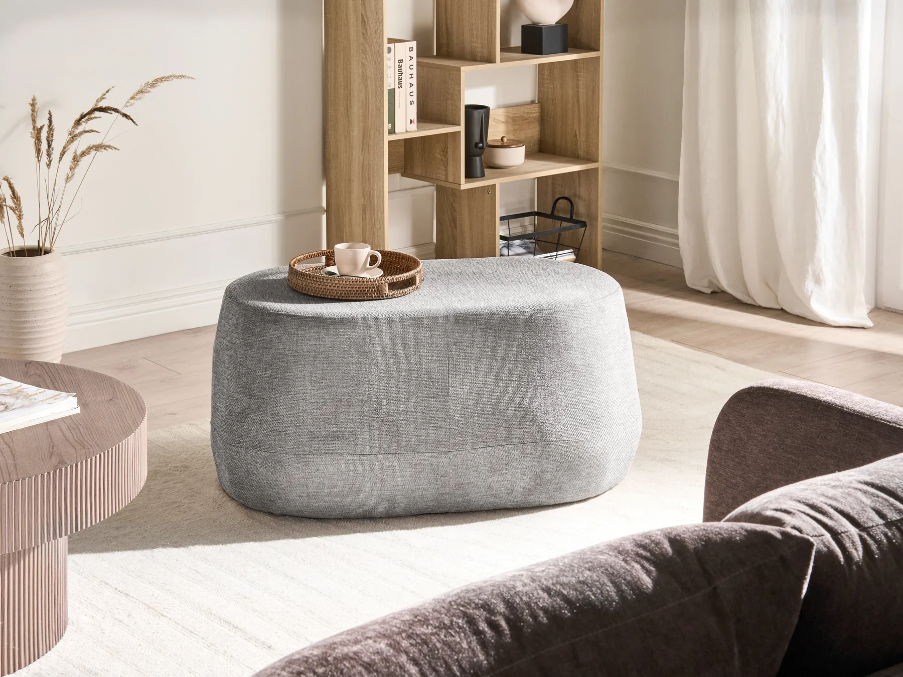 يضيف بووف ماڤلي البيضاوي لمسة دافئة وعصرية إلى أي غرفة معيشة بتصميمه الناعم وانحناءاته السلسة. يمكن استخدامه كطاولة قهوة خفيفة، مسند قدم، أو مقعد إضافي، مما يجعله قطعة عملية تناسب المساحات الحديثة. يتميز بقماش أنيق وحواف آمنة بدون زوايا حادة، ليمنحك مظهراً بسيطاً وجذاباً مع راحة مثالية للاستخدام اليومي.
