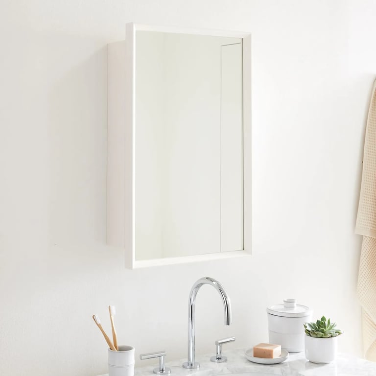 1. تصميم معاصر يضيف لمسة راقية لديكور الحمام، بالإضافة إلى القيمة العملية للمرآة.