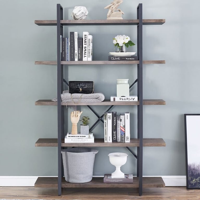 • تحتوي على 5 رفوف خشبية ذات سعة تخزين كبيرة لاستيعاب الكتب والقطع الديكورية والصوروأواني النباتات.