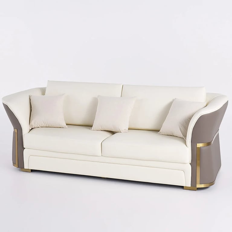 طقم أڤالين – كنبة وكرسيان بتصميم عصري فاخر مع تفاصيل ذهبية أنيقة