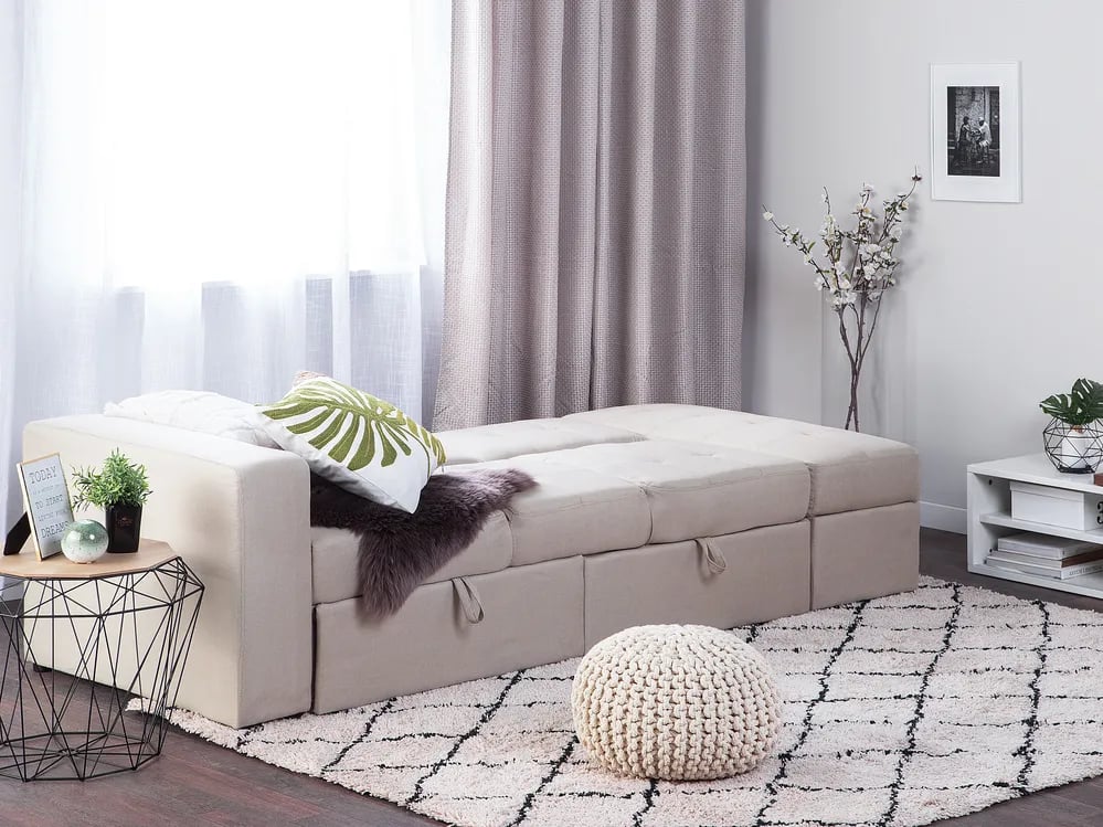 الرئيسية .دورميا كنبة سرير قابلة للتحويل من الخشب الطبيعي – تنجيد قماشي مع تخزين مخفي