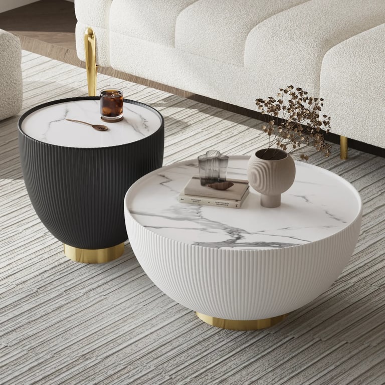 Elaris – Oval Coffee Table with Two Layers | Natural Wood & Marble Alternative