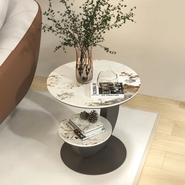 This coffee table is perfect for decorating your living room or office. Designed with iron bearing frame, scratch and corrosion resistant, not easy to rust. Sintered stone pattern table top.