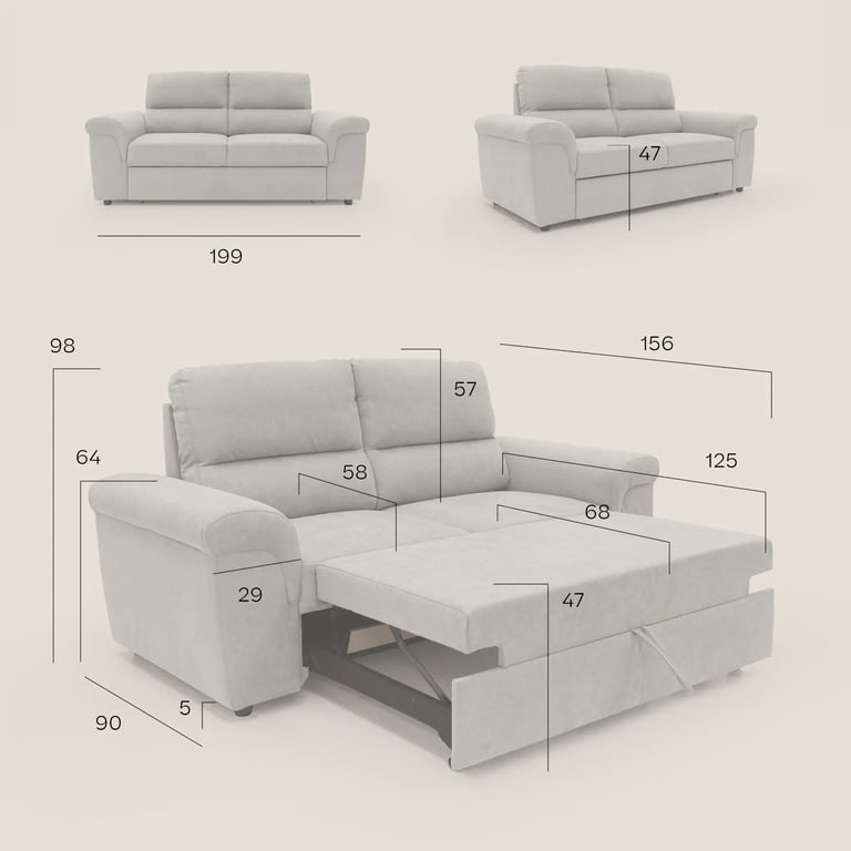 It combines classic design with modern comfort through its soft beige fabric, rolled arms, and generously filled pillow backs. Built on a durable frame, it offers supportive seating and a refined silhouette that fits beautifully into both traditional and contemporary interiors. Its neutral tone makes it easy to style while adding a warm, welcoming touch to your living space.