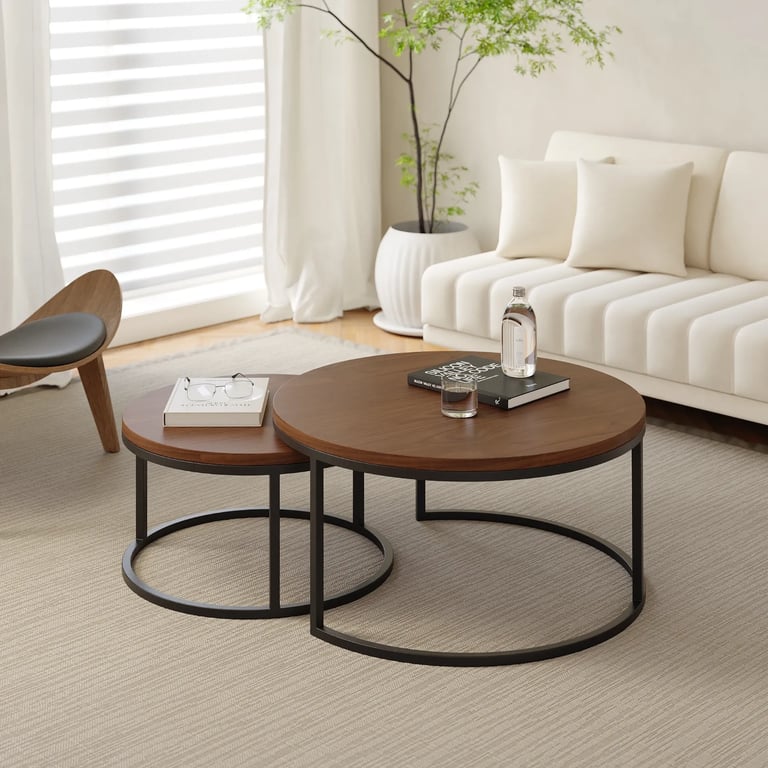3. Matching round coffee tables for a complete living room set.