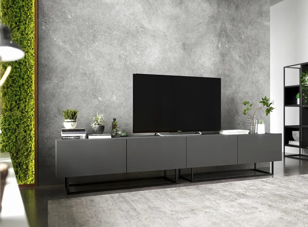 Oniro Long Media Console with Fluted Sliding Panels – Natural Wood