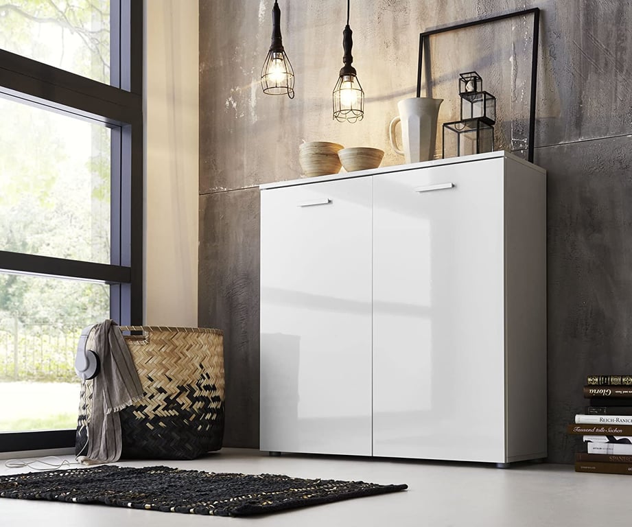 Oniro Long Media Console with Fluted Sliding Panels – Natural Wood